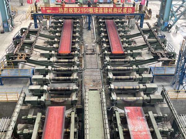 4#線為一機兩流2150板坯連鑄機,設計年產能700萬噸,主要為廣西盛隆2250熱連軋供坯。中冶賽迪裝備主要負責該項目鋼水罐回轉臺、結晶器液壓振動、高精度扇形段的成套設備供貨。該項目建成后將穩定生產高質量高耐候結構鋼、汽車鋼、焊接氣瓶鋼、高強管線鋼等,將為廣西盛隆高質量發展帶來新的經濟增長點。